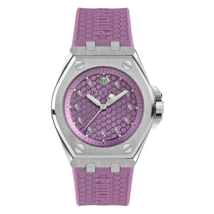 Die Philipp Plein® Analogue 'Plein Extreme Lady' Damenarmbanduhr PWJAA0222 definiert Luxus für die moderne Frau und präsentiert ein zeitloses Stück, das Eleganz nahtlos mit alltäglicher Praktikabilität verbindet. Diese exquisite Uhr verkörpert auf wunderbare Weise das Wesen der Marke Philipp Plein, die für ihre gewagten Designs und außergewöhnliche Qualität bekannt ist. Mit einem lässigen Stil passt sie mühelos zu jedem Anlass – von einem entspannten Brunch mit Freunden bis zu einem Abend in der Stadt. Die Uhr zeigt ein atemberaubendes lila Zifferblatt, das den Geist der Feminität und Raffinesse einfängt, ergänzt durch ein elegantes, rundes Gehäuse aus strapazierfähigem Edelstahl. Mit einem Durchmesser von 38mm und einer Dicke von 10mm passt sie bequem an jedes Handgelenk und setzt mit ihrem schicken Design ein Statement. Der sanfte Kontrast des lila Uhrenarmbands, das fachmännisch aus Silikon gefertigt ist, erhöht nicht nur die ästhetische Anziehungskraft, sondern sorgt auch für einen bequemen Sitz, ideal für den täglichen Gebrauch. Das Armband hat eine Länge von 19 cm und eine Breite von 23 mm und ist somit eine vielseitige Ergänzung Ihrer Accessoire-Kollektion. Diese Uhr ist mit einem analogen Display ausgestattet, das Lesbarkeit gewährleistet und gleichzeitig einen Hauch von klassischem Charme hinzufügt. Mit einer Wasserdichte von bis zu 5 Bar eignet sich die Plein Extreme Lady für verschiedene Aktivitäten und bietet Sicherheit, ohne den Stil zu beeinträchtigen. Das haltbare Mineralglas schützt das kunstvolle Design und stellt sicher, dass Ihre Uhr so atemberaubend bleibt wie am Tag des Kaufs. Egal, ob Sie eine stilbewusste Trendsetterin oder jemand sind, der feines Handwerk zu schätzen weiß, dieses Zeitmessgerät wird zweifellos Ihr Styling-Game heben.