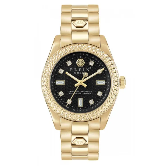 Philipp Plein ist ein Name, der mit Glamour und unvergleichlicher Handwerkskunst in Verbindung gebracht wird. Bekannt für seine gewagten Designs steht die Marke an der Spitze der Luxusmode und vereint hochwertige Materialien mit innovativen Stilen. Jede Kreation von Philipp Plein ist eine Feier der Individualität, entworfen für diejenigen, die es wagen, ein Statement abzugeben. Die Marke verkörpert eine Essenz von Kühnheit, bleibt dabei aber fest in der Raffinesse verwurzelt und ist ein Favorit unter modebewussten Personen. Mit ihrem Ansatz für zeitgenössischen Luxus verwandelt Philipp Plein jedes Stück in eine auffällige Darstellung moderner Eleganz, die Konventionen in Frage stellt und Grenzen überschreitet. Die Uhrenkollektionen, insbesondere, zeigen dieses Ethos und kombinieren Funktionalität mit künstlerischem Ausdruck, um Zeitmesser zu schaffen, die nicht nur Accessoires, sondern auch Kunstwerke sind. Jede Uhr erzählt eine Geschichte von Leidenschaft und Hingabe, die den Geist einer Marke widerspiegelt, die Qualität, Stil und Persönlichkeit über alles schätzt. Entdecken Sie Philipp Plein® Analogue 'Queen' Damenarmbanduhr