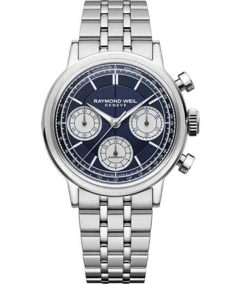 Raymond Weil ist ein renommiertes Unternehmen in der Welt der Haute Horlogerie und steht seit seiner Gründung im Jahr 1976 für Luxus und Präzision. Die Marke hat sich konsequent an die Prinzipien der Schweizer Uhrmacherkunst gehalten und vereint innovative Technik mit Eleganz und Stil. Jede Uhr von Raymond Weil wird mit akribischer Liebe zum Detail gefertigt und zeigt nicht nur technische Kompetenz, sondern auch eine Leidenschaft für Kunst und Raffinesse. Ihr Engagement für Qualität spiegelt sich in der exquisiten Auswahl an Materialien wider, von hochwertigen Metallen bis hin zu Saphirglas von höchster Güte, die Langlebigkeit garantiert, ohne auf Stil zu verzichten. Diese Traditionsmarke vereint klassisches Handwerk mit zeitgemäßem Design und spricht anspruchsvolle Individuen an, die sowohl Zuverlässigkeit als auch Glamour in ihren Zeitmessern suchen. Raymond Weil verkörpert den Geist der Kreativität und produziert Zeitmesser, die Freiheit und Individualität widerspiegeln, wodurch sie ein zeitloses Mode-Statement für Uhrenkenner und neue Enthusiasten gleichermaßen werden. Die Marke möchte inspirieren, Momente festhalten und die Meilensteine des Lebens mit jeder Kreation feiern, was ihren Platz im Luxusuhrenmarkt als echte Kunsthandwerker der Zeit bestätigt.Entdecken Sie Raymond Weil® Chronograph 'Millesime' Herrenuhr