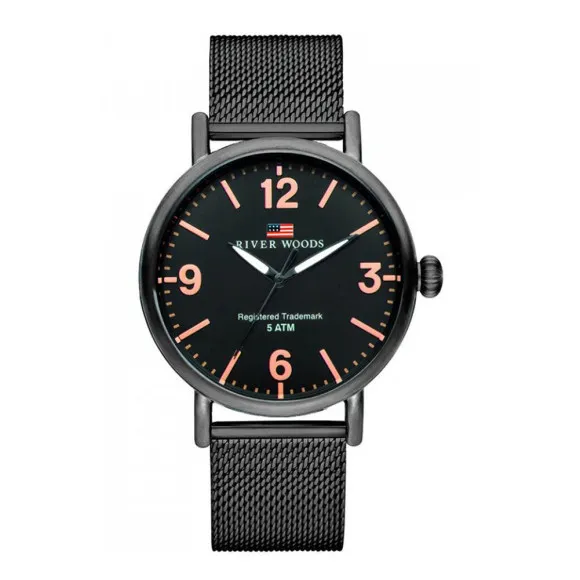 Die River Woods® Analogue 'Delaware' Herrenarmbanduhr RW420035 ist die perfekte Fusion aus Stil und Funktionalität, speziell für den modernen Mann entworfen. Mit einem Quarzwerk im Inneren ist diese Uhr für Präzision und Zuverlässigkeit ausgelegt, sodass Sie egal ob bei der Arbeit oder in der Freizeit immer pünktlich sind. Das runde Gehäuse aus schwarzem Edelstahl strahlt nicht nur Sophistication aus, sondern überzeugt auch durch Langlebigkeit mit einer Dicke von 9 mm, wodurch sie sich ideal für den täglichen Gebrauch eignet. Der Durchmesser von 42 mm sorgt für eine markante Präsenz an Ihrem Handgelenk, während sie den ganzen Tag über bequem zu tragen ist. Das Zifferblatt in auffälligem Schwarz wird perfekt durch gut lesbare Ziffern und Marker akzentuiert, die es Ihnen ermöglichen, die Uhrzeit auf einen Blick abzulesen. Das Zifferblatt ist durch Mineralglas geschützt, was eine zusätzliche Schicht der Widerstandsfähigkeit gegen Kratzer und Abnutzung bietet. Der Klappverschluss am robusten Edelstahlband sorgt für einen sicheren Sitz, ohne den Komfort zu beeinträchtigen. Das schwarze Armband passt sich nahtlos der Gesamtoptik an und hat eine Länge von 21 cm sowie eine Breite von 20 mm, sodass es an die meisten Handgelenke angepasst werden kann. Diese Uhr bietet auch eine Wasserdichtigkeit von bis zu 5 ATM, was sie für alltägliche Aktivitäten und leichtes Schwimmen geeignet macht. Mit ihrer Kombination aus lässiger Eleganz und robusten Eigenschaften ist die River Woods® Analogue 'Delaware' nicht nur eine Uhr; sie ist ein Ausdruck von Stil und Zuverlässigkeit, die Ihnen zu jedem Anlass gut zur Seite steht.Shop River Woods® Analogue 'Delaware' Herrenarmbanduhr bei Ormoda