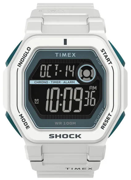 Präsentation der Timex® Digital 'Command Encounter' Herrenuhr TW2V63600, ein funktionales Accessoire für den modernen Mann. Diese Militäruhr zeigt eine robuste Ästhetik und ist für diejenigen entworfen, die Funktionalität mit auffälligem Design schätzen. Das rechteckige Gehäuse, gefertigt aus strapazierfähigem Resin, verfügt über ein sauberes weißes Finish und wird durch ein markantes schwarzes Zifferblatt ergänzt, das die Lesbarkeit unter verschiedenen Bedingungen verbessert. Ihr Quarzwerk gewährleistet eine präzise Zeitmessung, sodass Sie nie zu spät zu Ihrem nächsten Abenteuer kommen. Mit einer Gehäuselänge von 45 mm und einer Dicke von 14 mm passt dieses Zeitmessgerät bequem an Ihr Handgelenk, mit einem gesamten Armlängenmaß von 21 cm und einer Breite von 25 mm. Ausgestattet mit einer Vielzahl von Funktionen bringt die 'Command Encounter' Vielseitigkeit in Ihren Alltag. Behalten Sie Ihren Zeitplan im Auge mit dem integrierten Kalender, der sowohl Tag als auch Datum anzeigt. Nutzen Sie die Stoppuhr und den Timer während des Trainings oder stellen Sie Alarme für wichtige Erinnerungen ein. Die Dual-Zeit-Funktion ist perfekt für Vielreisende, die mehrere Zeitzonen überwachen. Die Indiglo-Lichtfunktion fügt ein Element der Raffinesse hinzu und ermöglicht Sichtbarkeit in dunklen Umgebungen, was sie praktisch für nächtliche Aktivitäten macht. Mit einer beeindruckenden Wasserdichtigkeit von bis zu 10 bar kann diese widerstandsfähige Uhr Sie auf verschiedenen Outdoor-Abenteuern ohne Sorge begleiten. Der robuste Schnallenverschluss sorgt für eine sichere Befestigung, sodass Sie sie mit Vertrauen tragen können, unabhängig von den Anforderungen Ihres Tages. Zusammenfassend verbindet die Timex® Digital 'Command Encounter' Herrenuhr Stil, Praktikabilität und Langlebigkeit und macht sie zum ultimativen Accessoire für die Sammlung jedes Mannes. Shop Timex® Digital 'Command Encounter' Herrenuhr bei Ormoda