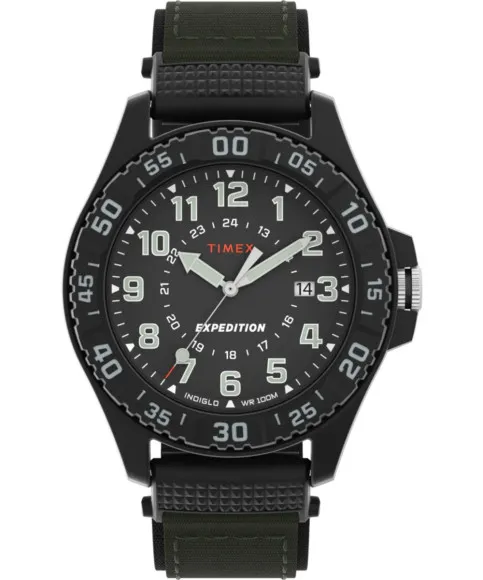 Die Timex Analogue 'Expedition Acadia' Herrenuhr TW4B26400 ist ein wahres Abbild von robuster Eleganz und Zuverlässigkeit. Diese militärisch inspirierte Uhr richtet sich an Männer, die Abenteuer und Funktionalität schätzen. Mit einem auffälligen schwarzen Zifferblatt, das in einem strapazierfähigen Gehäuse aus Resin untergebracht ist, ist die Expedition Acadia dafür ausgelegt, den Elementen zu trotzen. Das kristallklare Mineralglas sorgt für optimale Sichtbarkeit, während die markanten Zahlen auf der Lünette eine einfache Ablesbarkeit bieten. Mit einem Durchmesser von 41 mm und einer Dicke von 11 mm bietet das robuste Gehäuse eine perfekte Passform, ohne das Handgelenk zu überladen. Ihr leichtes Design, das nur 42 Gramm wiegt, macht sie zum idealen Begleiter für jedes Abenteuer, sei es beim Wandern oder bei entspannten Ausflügen. Die Uhr verfügt über eine praktische analoge Anzeige mit einer Datumsfunktion, die es Ihnen ermöglicht, den Tag im Blick zu behalten, während Sie unterwegs sind. Das grüne Gewebeband, mit einer Breite von 19 mm und einer Länge von 21 cm, verleiht einen Hauch von Militärflair und sorgt gleichzeitig für bequemen Tragekomfort. Ein traditioneller Schnallenverschluss sichert die Uhr fest am Handgelenk, sodass sie während aller Aktivitäten an ihrem Platz bleibt. Mit einer Wasserdichtigkeit von 3 bar ist dieses Zeitmesser für leichte Spritzer und Regen geeignet, was sie vielseitig für den täglichen Gebrauch macht. Jeder Aspekt der Timex Expedition Acadia ist für Männer gedacht, die einen aktiven Lebensstil führen, ohne auf Stil verzichten zu wollen. Mit ihrem Zusammenspiel aus Funktionalität und durchdachtem Design ist diese Uhr das perfekte Werkzeug und Accessoire und verkörpert den Geist der Erkundung in jedem Tick. Shop Timex® Analogue 'Expedition Acadia' Herrenuhr bei Ormoda