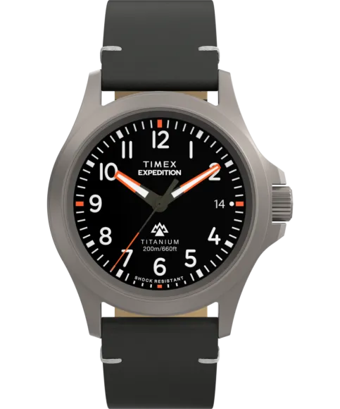 Timex weiß, wie man authentische Abenteuer liefert. Mit einer über 165-jährigen Geschichte hat die Marke sich einen Ruf aufgebaut, zuverlässige Uhren mit robustem Stil zu produzieren. Die Timex® Analogue 'Expedition North Field Post' Herren Uhr TW2W78000 verkörpert diesen Geist der Erkundung und Haltbarkeit. Gefertigt für den modernen Mann, der sowohl Funktionalität als auch Flair sucht, bietet diese Uhr ein sorgfältig gestaltetes Gehäuse aus grauem Titan, das sowohl stilvoll als auch robust ist. Mit einem Durchmesser von 38 mm bietet das runde Gehäuse eine kompakte und zugleich eindrucksvolle Präsenz am Handgelenk, perfekt für jeden Anlass, sei es in der Wildnis oder bei einem legeren Treffen. Das auffällige schwarze Zifferblatt wird durch Mineralglas geschützt, was sicherstellt, dass es in unterschiedlichen Umgebungen sichtbar und kratzfrei bleibt. Dieses Zeitmessgerät verfügt über ein zuverlässiges Quarzwerk, das eine präzise Zeitmessung gewährleistet und dabei nur wenig Wartung erfordert. Das schwarze Lederarmband, das 21 cm lang und 19 mm breit ist, fügt einen Hauch von Eleganz hinzu und sorgt dafür, dass es sich mit einem klassischen Dornverschluss sicher um Ihr Handgelenk schmiegt. Außerdem bietet die Uhr einen Datumscalendar, der Ihnen kontinuierliche Praktikabilität in Ihrem täglichen Leben bietet. Mit einer bemerkenswerten Wasserdichtigkeit von 20 bar bleibt die Uhr gegen die Elemente beständig, sodass sie ein treuer Begleiter ist, egal ob Sie die Natur erkunden oder im Alltag navigieren. Mit nur 48 Gramm Gewicht können Sie diese Uhr den ganzen Tag tragen, ohne sich um den Komfort Gedanken zu machen.Shop Timex® Analogue 'Expedition North Field Post' Herren Uhr bei Ormoda