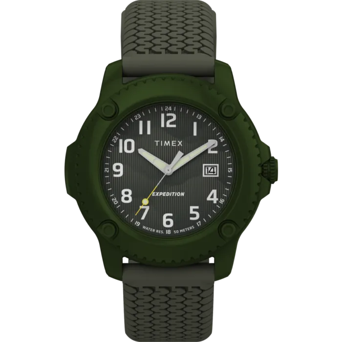 Die Timex® Analogue 'Expedition North Timberline' Herren Uhr TW4B34700 ist für den robusten Abenteurer konzipiert. Sie vereint Funktionalität und Stil und besticht durch eine markante Farbpalette in Grün, die ihre Verbindung zur Natur widerspiegelt. Das runde Aluminiumgehäuse mit einem Durchmesser von 42 mm beherbergt ein zuverlässiges Quarzwerk, das sicherstellt, dass Sie während Ihrer Erkundungen stets pünktlich sind. Mit einer Dicke von nur 11 mm bietet die Uhr einen angenehmen Tragekomfort, ideal für lange Wanderungen oder Alltagsgebrauch. Das Mineralglas schützt das lebendige grüne Zifferblatt, das sowohl die Uhrzeit als auch das Datum klar anzeigt, was eine einfache Ablesbarkeit in jeder Umgebung ermöglicht. Das Armband aus strapazierfähigem und flexiblem Silikon in passendem Grün misst 21 cm in der Länge und 19 mm in der Breite, sodass es an verschiedene Handgelenkgrößen angepasst werden kann. Der Schnallenverschluss sorgt dafür, dass die Uhr bequem sitzt, damit Sie sich auf Ihr Abenteuer konzentrieren können, ohne sich um Ihr Zeitnehmer Sorgen zu machen. Mit einer Wasserdichtigkeit von bis zu 5 Bar kann diese Uhr Spritzern und kurzen Eintauchungen standhalten und ist somit ideal für spontane Aktivitäten im Freien. Ob Sie durch einen Wald wandern oder sich im urbanen Dschungel bewegen, die Expedition North Timberline Herren Uhr verkörpert den Geist des Abenteuers. Sie ist ein Stück, das sowohl in Funktionalität als auch in Ästhetik hervorsticht und sich als zuverlässiger Begleiter für jeden Mann erweist, der Robustheit mit Eleganz vereinen möchte. Perfekt für Abenteurer und Alltagsnutzer gleichermaßen, ist diese Uhr ein unverzichtbares Accessoire, das einen maskulinen Stil ergänzt und sicherstellt, dass Sie auf alles vorbereitet sind, was das Leben Ihnen entgegenwirft.Shop Timex® Analogue 'Expedition North Timberline' Herren Uhr bei Ormoda