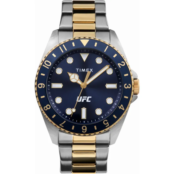 Präsentiert wird die Timex® Analogue 'Ufc Debut' Herren Uhr TW2V58400, ein beeindruckendes Beispiel für moderne Handwerkskunst, kombiniert mit sportlichem Flair. Diese Uhr ist für diejenigen konzipiert, die sowohl Stil als auch Funktionalität schätzen und vereint robustes Design mit eleganten Ästhetik. Timex, eine Marke, die für ihre innovativen Zeitmesser bekannt ist, ist seit langem ein Favorit unter denjenigen, die Genauigkeit und Langlebigkeit schätzen. Mit Wurzeln, die bis ins Jahr 1854 zurückreichen, hat ihr Engagement für Qualität sie an die Spitze der Uhrenindustrie gestellt. Die 'Ufc Debut' ist ein Beweis für die Fähigkeit von Timex, gewagte Designs mit vielseitiger Tragbarkeit in Einklang zu bringen, was sie zur perfekten Ergänzung für sowohl Freizeitaktivitäten als auch berufliche Anlässe macht. Die Uhr ist mit Präzision gefertigt und zeigt ein strahlend blaues Zifferblatt, das eine fesselnde Bühne für das runde Edelstahlgehäuse bildet, das mit einer glatten Oberfläche versehen ist. Das Gehäuse hat einen Durchmesser von 42mm, ist leicht und robust zugleich und sorgt für Komfort über den ganzen Tag, während es gleichzeitig eine zeitgemäße Ästhetik bietet. Die praktische Funktionalität wird durch ein Quarzwerk gewährleistet, das sicherstellt, dass Sie immer pünktlich sind. Die Uhr verfügt über eine einzigartige Lünette mit Zahlen, die ihrem Gesamtbild einen sportlichen Charme verleiht. Ein auffälliges Armband in Multicolor, hergestellt aus Edelstahl, unterstreicht ihren rauen und abenteuerlichen Geist. Mit einer Armbandlänge von 21cm und einer Breite von 21mm passt dieses Zeitmesser bequem an verschiedene Handgelenkgrößen. Die faltbare Schnalle mit Druckknopf sorgt für Sicherheit und verleiht gleichzeitig einen Hauch von Eleganz. Mit einer Wasserbeständigkeit von 5 ATM können Sie sie in verschiedenen Umgebungen selbstbewusst tragen, sei es beim Training oder bei gesellschaftlichen Anlässen. Treu zum Erbe von Timex ist dieses Stück nicht nur ein Zeitmesser; es ist ein Ausdruck von Stil und Stärke. Shop Timex® Analogue 'Ufc Debut' Herren Uhr bei Ormoda