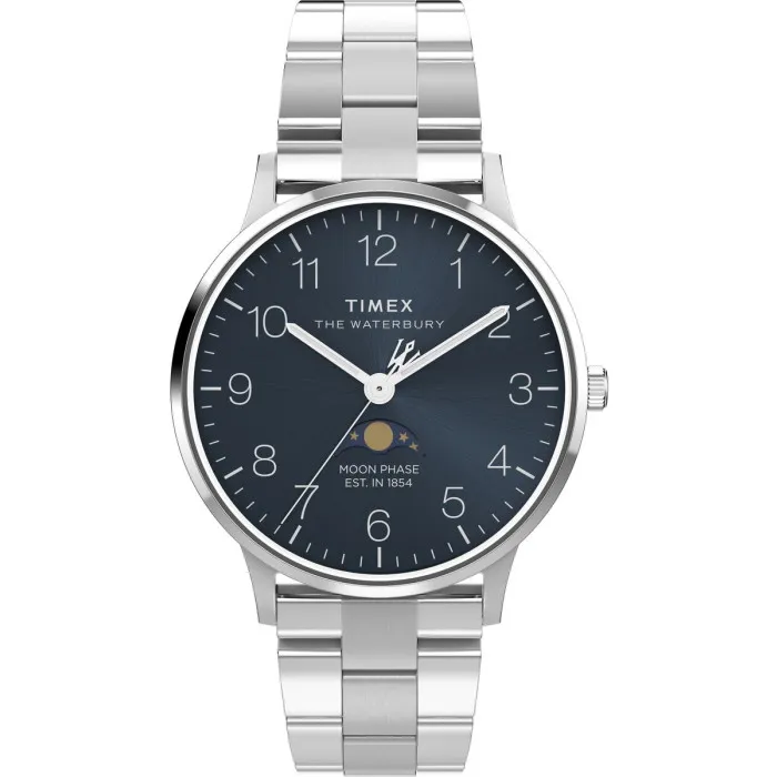 Timex steht als ein Leuchtturm der Innovation und Qualität in der Uhrenherstellung, ein Erbe, das seit seiner Gründung im Jahr 1854 floriert. Die Philosophie der Marke konzentriert sich auf die Herstellung von Zeitmessern, die Zuverlässigkeit und Erschwinglichkeit bieten, ohne dabei auf Stil zu verzichten. Bekannt für ihre Haltbarkeit und präzisen Quarzbewegungen sprechen Timex-Uhren eine breite Palette von Verbrauchern mit unterschiedlichen Geschmäckern und funktionalen Bedürfnissen an. Die Waterbury-Kollektion schöpft tief aus der Inspiration von Timex' Wurzeln in Waterbury, Connecticut, und zeigt eine Mischung aus klassischem Charme und modernen Designelementen. Mit jedem Stück setzt Timex sein Engagement für Handwerkskunst fort und gewährleistet, dass jede Uhr nicht nur ein Werkzeug zum Messen der Zeit ist, sondern auch ein Ausdruck persönlichen Stils. Sie haben erfolgreich Praktikabilität mit Eleganz kombiniert, sodass ihre Uhren nicht nur zuverlässige Begleiter, sondern auch wertvolle Modeaccessoires sind. Von ihren ikonischen Designs bis hin zu ihrer nahtlosen Integration fortschrittlicher Technologie bleibt Timex ein vertrauenswürdiger Name für Uhrenliebhaber auf der ganzen Welt und liefert ständig Produkte, die den sich wandelnden Geschmäckern ihrer treuen Kunden gerecht werden.Entdecken Sie Timex® Analogue 'Waterbury Classic Moon Phase' Herren Uhr