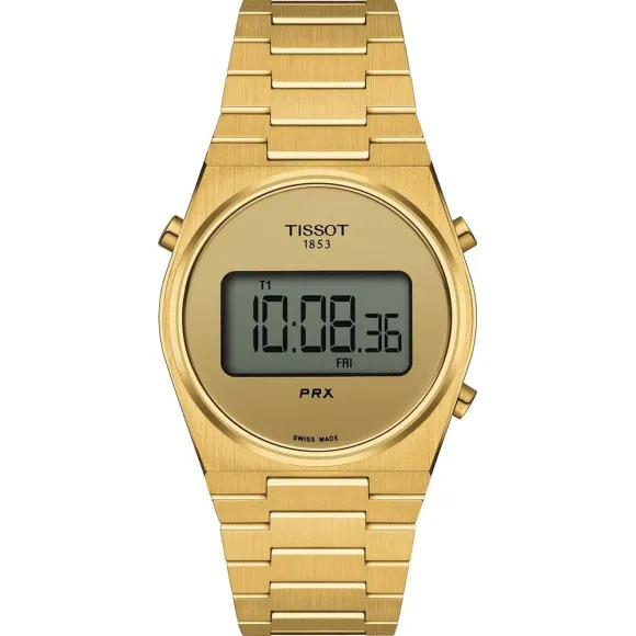 Entdecken Sie die Tissot® Digitaluhr 'Prx' für Herren T1372633302000, ein Präzisionsinstrument, das aus einer Legende der Schweizer Handwerkskunst hervorgegangen ist. Diese beeindruckende Uhr verkörpert die perfekte Balance zwischen Luxus und Funktionalität und ist dafür entworfen, den Anforderungen des modernen Mannes gerecht zu werden. Ihr elegantes und modernes Äußeres wird durch ein markantes, goldfarbenes Edelstahlgehäuse und -band ergänzt, das Ihrem Handgelenk ein auffälliges Funkeln verleiht. Das runde Gehäuse mit einem Durchmesser von 35 mm ist kunstvoll gestaltet, um ein raffiniertes digitales Display zu beherbergen, damit Sie nicht nur gut aussehen, sondern auch immer den Überblick über Ihren Zeitplan behalten. Ausgestattet mit einem Saphirglasfenster bleibt Ihre Uhr gut geschützt und bietet Klarheit, die Kratzern und Abnutzung trotzt. Dieses Modell verfügt über eine Vielzahl praktischer Funktionen, darunter einen Tagesdatumskalender, eine Stoppuhr, einen Countdown-Timer, die Anzeige zweier Zeitzonen und einen Alarm. Damit ist sie der ideale Begleiter, egal ob Sie bei der Arbeit sind oder Ihre Freizeit genießen.Shop Tissot® Digitaluhr 'Prx' für Herren bei Ormoda