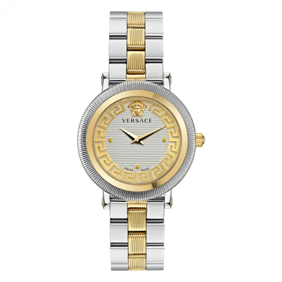 Versace, ein Name, der für Luxus und Opulenz steht, zählt seit langem zu den Vorreitern der High Fashion. Gegründet von Gianni Versace im Jahr 1978, hat die Marke stets Grenzen überschritten und Kunst mit Mode vereint, um fesselnde Designs zu schaffen. Mit einem bleibenden Erbe, das durch gewagte Äußerungen und lebendige Muster geprägt ist, wurde Versace zum Symbol der Extravaganz. Die Zeitmesser der Marke verkörpern diese Ethik und integrieren den Geist des Laufstegs in die Alltagsmode. Bekannt für akribische Handwerkskunst und innovative Designs sind Versace-Uhren nicht nur Werkzeuge zur Zeitmessung; sie sind tragbare Kunstwerke, geschaffen für diejenigen, die beeindrucken möchten. Elemente, die die charakteristischen Motive der Marke widerspiegeln, lassen jede Uhr eine Geschichte von Eleganz, Attitüde und unerschütterlichem Stil erzählen. Versace-Uhren verkörpern in jeder Hinsicht Luxus und sprechen Frauen an, die die feinen Dinge im Leben schätzen und Exzellenz in Design und Funktion verlangen. Von zeitloser Eleganz bis hin zu zeitgenössischem Flair sind die Uhrenkollektionen von Versace so gestaltet, dass sie inspirieren und ermächtigen und Frauen erlauben, ihre einzigartigen Identitäten durch exquisite Handwerkskunst auszudrücken.Entdecken Sie Versace® Analogue 'Greca Flourish' Damenarmbanduhr