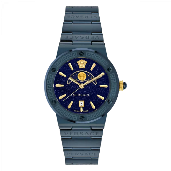 Versace ist ein Synonym für Luxus und zeitlose Eleganz und setzt weltweit Maßstäbe für Mode und Accessoires. Mit einem Erbe, das in italienischer Handwerkskunst verwurzelt ist, wird die Marke seit langem für ihre mutigen Designs und prunkvollen Details gefeiert. Gegründet von dem visionären Gianni Versace, verkörpert die Marke einen kühnen Geist, der diejenigen anspricht, die Einzigartigkeit und hochwertige Kunstfertigkeit in ihrer Garderobe suchen. Versace hat Kunst geschickt mit Mode verbunden, Grenzen verschoben und das Konzept von Luxusuhren und Schmuck neu definiert. Die Liebe zum Detail, außergewöhnliche Materialien und innovative Designs haben die Marke zu einer Lieblingswahl bei anspruchsvollen Kunden gemacht. Das Erbe lebt weiter und inspiriert Generationen mit aufregenden neuen Kollektionen, was Versace nicht nur zu einem Namen, sondern zu einem Lebensstil macht, der das Wesen des Reichtums verkörpert. Durch eine harmonische Verbindung von Tradition und Modernität bleibt Versace eine Kraft im Schmuck- und Uhrenmarkt, die mit jeder Kreation Herzen und Gedanken fesselt.Entdecken Sie Versace® Analogue 'Greca Logo Moonphase' Damen Uhr