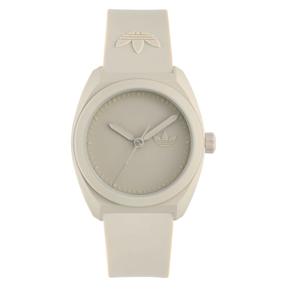The Adidas Originals® Analogue 'Project Three' Unisex's Watch AOST24055 embodies a harmonious blend of sporty elegance and practical design. This casual timepiece is crafted from high-quality ceramic, featuring a round case that boasts a sophisticated beige tone. Measuring 42mm in diameter and 11mm in thickness, the watch offers a substantial yet comfortable fit, making it suitable for daily wear. The beige dial is protected by durable mineral glass, ensuring clarity and resilience against everyday scratches, allowing you to keep an eye on time effortlessly. The quartz movement guarantees precise timekeeping, making this watch a reliable companion for any activity. It features an easy-to-read analogue display, which adds a touch of classic charm to the overall aesthetic. The watch band, made of lightweight plastic and also in a beige color, extends to a length of 20cm with a width of 21mm, providing a snug yet comfortable fit around the wrist. A secure buckle clasp ensures the watch stays in place, giving you peace of mind whether you're on the go or at rest. With a water resistance of up to 5 bars, this watch is ready for various adventures, from casual outings to a splash of poolside fun. The Adidas Originals brand signifies not only a commitment to quality but also a fashionable lifestyle that resonates with dynamic individuals. Designed for everyone, the Project Three watch is an ideal accessory, seamlessly transitioning from day to night, sport to style. Celebrate individuality and innovation with this must-have timepiece from one of the world's leading sportswear brands.Shop Adidas Originals AOST24055 at Ormoda
