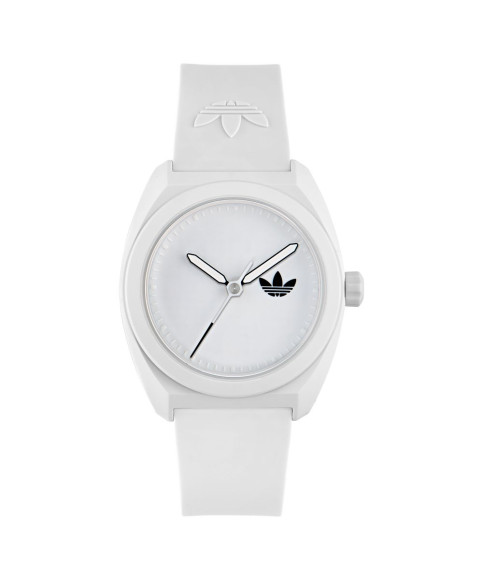 Introducing the Adidas Originals® Analogue 'Project Three' Unisex's Watch AOST24548, a timepiece that blends athletic spirit with contemporary design. Adidas Originals, known for its commitment to high-performance and stylish products, has excelled in creating this versatile watch that seamlessly fits into both casual and active lifestyles. Wearing a watch from this brand is not just about keeping time; it's about embracing a lifestyle rooted in sport and individuality. This elegant piece reflects the innovative aesthetics that fans of the brand have come to appreciate, making it suitable for anyone who values quality and trend. The watch features a robust quartz movement that ensures precise timekeeping. The round case measures 42mm in diameter with a thickness of 11mm, crafted from durable ceramic, giving it a modern and sleek appearance. The stunning white case is complemented by a matching white dial, providing a fresh and clean look. The dial is protected by mineral glass, ensuring durability and resistance to scratches. To further enhance its practicality, the watch is designed with a water resistance of up to 5 bars, making it suitable for everyday wear. Its band, also in white, is crafted from plastic, offering both comfort and flexibility for diverse activities. With a length of 20cm and a width of 20mm, the band includes a secure buckle clasp that ensures a perfect fit for any wrist. The overall weight of the watch is a lightweight 47g, making it comfortable to wear throughout the day. With its blend of style and functionality, the Adidas Originals® Analogue 'Project Three' watch is a must-have accessory for anyone looking to elevate their daily outfits.Shop Adidas Originals AOST24548 at Ormoda