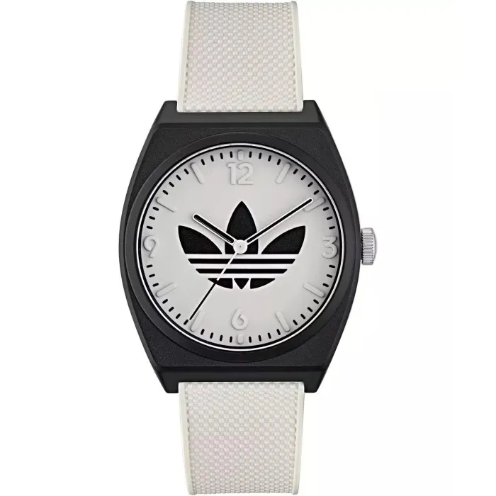 The Adidas Originals® Analogue 'Project Two' Unisex's Watch AOST23549 is a remarkable fusion of style and functionality. Designed for individuals who appreciate both form and function, this watch effortlessly complements any casual outfit. It features a sleek black resin case that measures 38mm in diameter, providing both durability and a sophisticated look. This watch strikes the perfect balance between subtle elegance and sporty flair, making it suitable for a diverse audience. The 10mm thickness of the case offers a comfortable fit on the wrist, while the white dial with mineral glass window enhances readability.All eyes will be on the striking white band that adds a fresh contrast to the black case. The band is crafted from high-quality resin, ensuring it maintains its pristine condition over time. With a band length of 20cm and a width of 19mm, it provides a secure and adaptable fit for various wrist sizes. The classic buckle clasp ensures it remains firmly in place, allowing you to go about your day worry-free. Designed to resist water pressures of up to 5 bars, this watch is suitable for everyday wear, whether you're at the gym, at work, or out on the town.