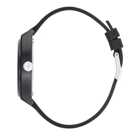 The Adidas Originals® Analogue 'Street Project Two' Unisex's Watch AOST22039 is a brilliant fusion of style and functionality, designed to elevate your daily attire. This timepiece showcases a sleek black resin case with a round design that embodies a modern, casual flair. With a 38mm diameter and a thickness of 9mm, it comfortably fits every wrist while making a bold statement. The black dial offers a minimalist aesthetic, protected by durable mineral glass that ensures clarity and longevity against life's rigors. This watch features a reliable quartz movement, allowing you to effortlessly keep track of time without any hiccups. The watch sports a robust black plastic band that not only provides comfort but also complements the overall design. With a band length of 20cm and a width of 19mm, it accommodates various wrist sizes, catering to a unisex audience. The buckle clasp ensures a snug fit while allowing for easy adjustments. Built to withstand your active lifestyle, this timepiece is water-resistant up to 5 bars, making it practical for everyday wear. The lug-to-lug height measures 46mm, adding to its robust presence on your wrist. Whether you’re dressing up for a casual outing or just looking for a reliable everyday watch, the Adidas Originals® Analogue 'Street Project Two' is your go-to accessory, blending aesthetics with function effortlessly.Shop Adidas Originals AOST22039 at Ormoda