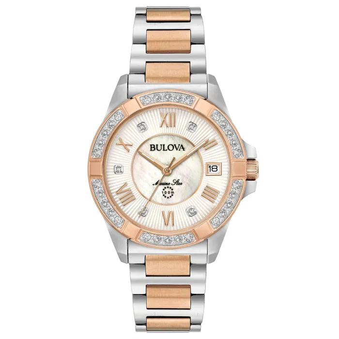At Ormoda, we strive to deliver an exceptional shopping experience, which is why your purchase of the Bulova® Analogue 'Marine Star' Women's Watch 98R234 comes with several benefits. Enjoy free express shipping with premium couriers, ensuring that your exquisite watch reaches you swiftly and safely. We understand that sometimes decisions take time, which is why we offer a 30-day free returns policy, allowing you to shop with confidence. Your satisfaction is our priority, which is why every watch comes with a two-year warranty, giving you peace of mind with your investment. Additionally, our expert customer support team is ready to assist you with any inquiries or concerns you may have. With years of experience in the industry since 1976, we are committed to providing you with quality service and products that embody luxury and style.Specifications