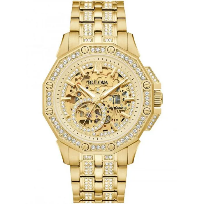 Bulova, a timepiece brand of unfaltering precision and masculine allure, signifies not just a purchase but an investment in legacy. With its artful craftsmanship, Bulova has been engineering watches that encapsulate the essence of luxury and performance since its inception. Striking the perfect chord with the modern gentleman, Bulova encompasses a range of watches tailored to the man who appreciates detail and the fine art of watchmaking. Introducing the Bulova Analogue 'Octava' Men's Watch 98A292, an embodiment of the brand's dedication to excellence. Seated in a lustrous 42mm gold stainless steel case, the Octava radiates sophistication. The round case shape, complemented by a tasteful 12mm thickness, adds a touch of elegance to its robust stature. A stone-settings bezel function surrounds the rich gold dial, enhancing not just the visual appeal but embodying the luxe charisma inherent in Bulova's design language. The heart of the Octava beats with reliable automatic movement, ensuring that your time is always well-kept. Encased beneath a durable mineral glass, the golden dial unfolds a visual story of time with its analogue display. Affixed to the lustrous case is a 21cm matching stainless steel band, with a comfortable 21mm width and a secure deployment clasp, underscoring the watch's devotion to comfort and functionality alongside opulence. Water resistance up to 3 bars and a lug-to-lug height of 50mm complete the Octava's impressive list of attributes, wrapping up a timepiece not just built to accompany you through life's occasions but to enhance them. With Ormoda, luxury extends beyond the realm of products to an entire shopping experience designed to match the grandeur of the items we curate. Ormoda's commitment translates into a spectrum of advantages such as complimentary express shipping delivered by premium couriers. Our confidence in the quality of our assortment is underscored by a 30-day free return policy, which is a promise to our consumers for a worry-free acquisition. Accompanying your timepiece is a robust two-year warranty safeguarding your investment against the unpredictability of time. Additionally, Ormoda has a dedicated team of expert customer support standing by since 1976, ready to assist with your choice and to enrich your shopping journery with knowledge and care.