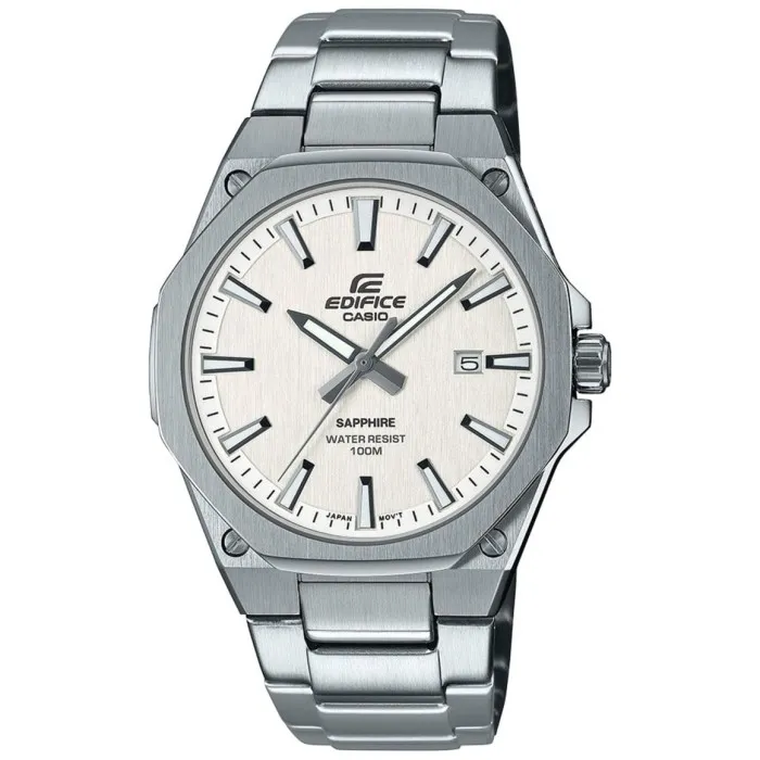 Experience the perfect blend of style and functionality with the Casio Analogue 'Edifice' Men's Watch EFR-S108D-7AVUEF. This watch is designed for the modern man who values performance and aesthetic appeal equally. With a robust quartz movement, it guarantees precise timekeeping, ensuring you stay punctual no matter how busy your schedule gets. The watch features a sleek round case made from durable stainless steel, boasting a clear sapphire glass dial window that not only protects against everyday scratches but enhances visibility, allowing you to read the time effortlessly. Its elegant silver color adds a touch of sophistication, making this timepiece versatile for both casual and formal occasions. The meticulous design is complemented by a silver stainless steel band, measuring 21 cm in length and 22 mm in width, ensuring a comfortable and secure fit on your wrist. The fold-over push-button clasp provides added convenience, making it easy to wear or remove the watch swiftly. With a water resistance of up to 10 bars, this watch is suitable for everyday wear and can handle various environments, from a dip in the pool to a day at the office. In addition to its excellent craftsmanship, the Casio Analogue 'Edifice' features a date calendar, seamlessly integrating functionality with elegance. Weighing only 110 grams, this watch is lightweight yet sturdy, making it an ideal companion for your daily adventures. Whether you're heading to a meeting, out for a casual night, or just running errands, this watch is a reliable accessory that will elevate your outfit and keep you on time.Shop Casio EFR-S108D-7AVUEF at Ormoda