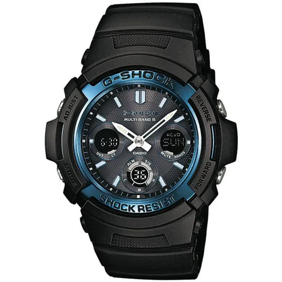 Introducing the impressive Casio Analogue-digital 'G-shock' Men's Watch AWG-M100A-1AER, a compelling fusion of style and functionality tailored for the modern man. Crafted to withstand the rigors of everyday life, this watch boasts a rugged military aesthetic that speaks to both durability and boldness. The durable resin case, with a striking black finish, protects a captivating blue dial, which features an easy-to-read display combining both analogue and digital elements. Its 46mm round case not only makes a powerful statement on the wrist but also houses a reliable quartz movement, ensuring accurate timekeeping wherever your adventures may take you. Designed with functionality in mind, this versatile watch is equipped with world-time features, a stopwatch, countdown timer, alarm, and a luminous light for clear visibility in low-light conditions. It can withstand pressures of up to 20 bars, making it perfect for swimming and diving. The solid plastic band, extending to 21cm in length, is both comfortable and practical, featuring a secure buckle clasp for added assurance. The watch also features a convenient day-date calendar function, keeping you organized in your busy schedule. Weighing in at just 56 grams, this watch provides a commanding presence without feeling cumbersome. The lug-to-lug height of 50mm further enhances its hefty, masculine look, making it an ideal choice for those who appreciate a watch that combines rugged functionality with a sporty design. For any man looking to elevate his wristwear, the Casio Analogue-digital 'G-shock' Men's Watch is not just an accessory but a reliable companion for everyday challenges, embodying strength, precision, and style.Shop Casio AWG-M100A-1AER at Ormoda