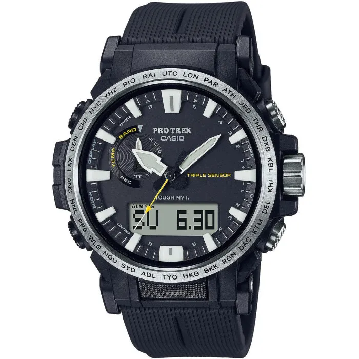 Casio has long been synonymous with innovation and durability in the realm of timekeeping. Renowned for its meticulously crafted timepieces, Casio has consistently pushed the boundaries of technology while catering to the needs of outdoor enthusiasts. The Pro-Trek series personifies this dedication, blending robust design with advanced functionality. Each watch in this line is engineered to withstand the elements, featuring essential tools for trekking and outdoor activities. The emphasis on precision, both in watch mechanics and design, ensures that each Pro-Trek watch delivers reliability in every adventure. From quartz movements to unparalleled resilience, Casio's commitment to excellence is evident in every detail of the Pro-Trek collection. With an ethos built on being the companion of explorers, these timepieces offer features that empower users to navigate the great outdoors smoothly, expanding the way we interact with time and the world around us.Introducing Casio® Analogue-digital 'Pro-trek' Men's Watch PRW-61-1AER