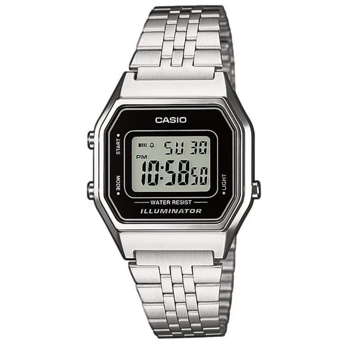 Introducing the Casio® Digital 'Vintage' Unisex's Watch LA680WEA-1EF, a harmonious blend of modern functionality and classic aesthetics. This timepiece is designed for everyday wear, ideal for those who appreciate both style and practicality. The square watch case, measuring 33mm in length and 29mm in width with a thickness of just 8mm, features a sleek silver resin body that provides a lightweight yet durable experience. The contrast of the black dial against the digital display enhances readability and adds a touch of elegance to its casual design. Equipped with a battery-powered quartz movement, this watch promises precision in timekeeping. The durable mineral glass cover protects the watch face, ensuring longevity while preserving its clear view. The watch showcases a range of practical functions, including an alarm, a stopwatch, and a 24-hour display, making it the perfect companion for your daily schedule. The stainless steel band, with a width of 17mm and a generous length of 20cm, offers comfort and style. Finished with a fold-over clasp, it guarantees a secure fit on your wrist. Designed to withstand daily activities, this watch is water-resistant up to 3 bars, allowing you to navigate through life’s challenges without worry. Whether you're at work, exercising, or enjoying a night out, the Casio Digital 'Vintage' caters to your lifestyle seamlessly. Shop Casio LA680WEA-1EF at Ormoda