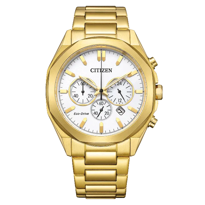 The CitizenĀ® Chronograph Men's Watch exudes a commanding presence with its luxurious gold tones and meticulously crafted details. This stunning timepiece features an elegant round case made of high-quality stainless steel, measuring 42mm in diameter and 12mm in thickness. The white dial, protected by sturdy mineral glass, showcases luminous hands that effortlessly glide over the 24-hour display and the date calendar, elevating both functionality and style. Delve into the simplicity of the casual design while enjoying the advanced features of this chronograph watch that is powered by Citizen’s innovative Eco-Drive technology, ensuring it remains environmentally conscious. The meticulously designed band, also crafted from stainless steel, measures 21cm in length and pairs seamlessly with the case, weighing in at a substantial 147 grams for a reassuring presence on the wrist. Additionally, the foldover clasp with push button offers both security and ease of use, making it a practical choice for the modern man. With a water resistance rating of up to 10 bars, this timepiece is ready for any adventure or task at hand. The CitizenĀ® Chronograph Men's Watch CA4592-85A is not just a watch; it is a statement that combines durability, elegance, and innovation in one striking piece.