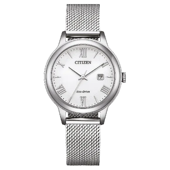 The CitizenĀ® Analogue Women's Watch EW2621-75A is a splendid embodiment of elegance and functionality, designed for the modern woman who appreciates both style and sophistication. This exquisite timepiece features a stunning round case made from stainless steel with a lustrous silver finish, measuring 30mm in diameter and just 7mm in thickness, making it a perfect fit for any wrist. The pristine white dial, protected by durable crystal glass, boasts a refined aesthetic that is not only pleasing to the eye but also easy to read. With a date function incorporated into the design, this watch ensures that you never miss an important appointment. One of the remarkable features of this piece is its Eco-Drive movement, harnessing the power of light to keep you on time without the need for battery replacements. This innovative technology is not only environmentally friendly but delivers consistent performance day after day. The watch is complemented by a silver stainless steel band, measuring 19cm in length and 15mm in width, providing adjustable comfort thanks to its user-friendly folding clasp. Catapulting this watch into the realm of durability, it offers water resistance up to 3 bars, allowing you to wear it with confidence in everyday situations. With a weight of 58 grams, it feels luxurious on the wrist without being overly cumbersome. The CitizenĀ® Analogue Women's Watch EW2621-75A is more than just a timepieceāitās a statement piece that combines functionality and elegance effortlessly, making it a must-have accessory for every woman's collection. Shop Citizen EW2621-75A at Ormoda