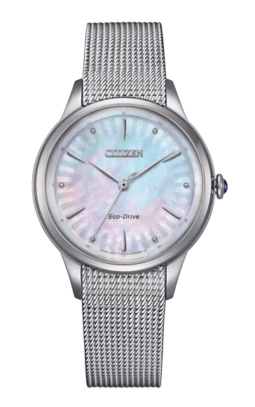 Introducing the CitizenĀ® Analogue 'L Series' Women's Watch EM1150-86D, a perfect fusion of elegance and functionality. This exquisite timepiece features a stunning mother-of-pearl dial encased in a beautifully crafted round stainless steel case. With a diameter of 32mm and a thickness of just 8mm, it reflects a grace that perfectly complements any outfit, whether for a casual day out or a formal evening event. The Eco-Drive movement ensures you will never have to worry about changing batteries, harnessing light to keep this lovely watch ticking seamlessly. The luxurious silver watch band integrates effortlessly, measuring 19cm in length and 14mm in width. Its folding clasp provides a secure fit while adding an air of sophistication. This watch is designed for the modern woman who values style and sustainability. With a water resistance rating of up to 5 bars, itās resilient enough for daily wear yet elegant enough to make a statement. The sapphire glass will protect the timepiece against scratches, maintaining its pristine condition even after years of use. Wear it alone for a minimalist look or layer it with your favorite bracelets to elevate your style. The CitizenĀ® Analogue 'L Series' is more than just a watch; itās a statement piece that embodies grace and purpose. Capture the essence of timeless beauty with this impressive addition to your jewelry collection.Shop Citizen EM1150-86D at Ormoda