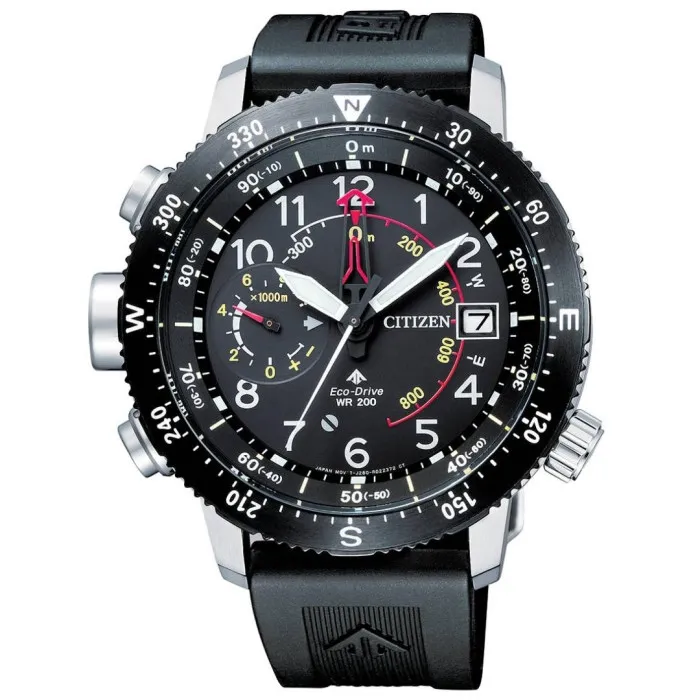 Citizen is a name synonymous with quality and innovation in the watchmaking industry. For over a century, the brand has spearheaded advancements in technology, consistently revolutionizing how timepieces are crafted and enjoyed. With a dedication to precision, Citizen watches are designed not just as instruments but as reflections of individual style and class. Known for their commitment to sustainability, the brand’s Eco-Drive technology is a prime example of how they blend sophisticated craftsmanship with eco-friendly practices. The Promaster line is particularly renowned, embodying performance and durability for those with a passion for exploration. Designed to endure the rigors of the great outdoors, each Promaster timepiece represents a marriage of form and function, providing adventurers with reliable tools that never compromise on style or performance. In Citizen's world, every watch is an invitation to push the boundaries of what is possible, making it a trusted companion for every journey.Introducing Citizen® Multi Dial 'Promaster' Men's Watch BN4044-15E