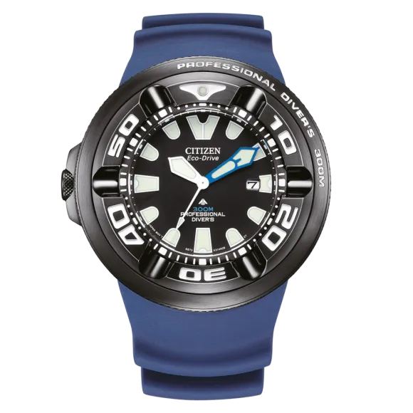 The CitizenĀ® Analogue 'Promaster Marine' Men's Watch is a pinnacle of craftsmanship that combines functionality and style in a sophisticated design. This diver watch is tailored for men who are not only adventurous but also have a taste for luxury. With a striking black stainless steel case measuring 48mm in diameter and 18mm thick, it exudes a robust character. The turnable bezel and luminous features are crafted to withstand the depths of the ocean while ensuring you can read the time clearly, even in low-light conditions. Powered by Eco-Drive technology, this watch is fueled by light, ensuring you never run out of battery power amidst your underwater explorations. The black dial is complemented by luminous hands and numbers, allowing for easy readability. The durability of the mineral glass protects the intricate dial, while the plastic blue band, 21cm in length and 26mm in width, ensures a comfortable fit for any wrist. Designed with a date calendar feature, it keeps you on schedule both on land and at sea. With a water resistance rating of 30 bars, you can dive with confidence, knowing that this watch can handle the depths. The buckle clasp adds a secure closure, making it perfect for active lifestyles. Whether you're in a boardroom meeting or exploring the ocean's treasures, this watch represents the perfect companion for the modern gentleman.Shop Citizen BJ8055-04E at Ormoda