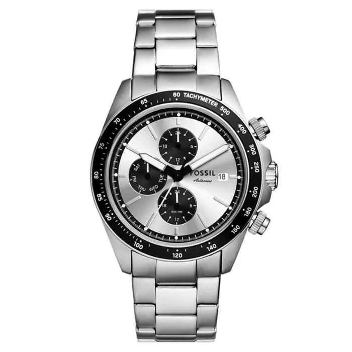 The Fossil® Multi Dial 'Autocross' Men's Watch FS6124 exudes an air of sophistication and strength, making it an exceptional addition to any gentleman's collection. This meticulously crafted timepiece features a durable stainless steel case adorned in a polished silver finish, which harmonizes beautifully with the multi-dial display. With a case diameter of 42mm and a thickness of just 12mm, it balances presence with comfort, making it suitable for both daily wear and special occasions. The round case style is timeless, ensuring that this watch will remain a staple in your collection for years to come. At the heart of this stunning watch is a precise quartz movement, ensuring reliable timekeeping that you can trust. The striking silver dial is protected by mineral glass, resilient against scratches and daily wear. Features such as a tachymeter bezel allow for the measurement of speed over distance, while the day-date calendar adds practicality to its aesthetic appeal. This timepiece is designed for a variety of activities, making it the perfect companion for both work and leisure. The stainless steel band measures 21cm in length and 21mm in width, ensuring a comfortable fit for the wrist. Its fold-over clasp with a push button adds an extra layer of convenience, ensuring the watch remains securely on your wrist. Capable of withstanding water pressure up to 5 bars, you don't have to worry about it getting damaged during everyday use. With a lug-to-lug height of 48mm, it's designed to suit a wide range of wrist sizes and styles, making it a versatile choice for any man.Shop Fossil FS6124 at Ormoda