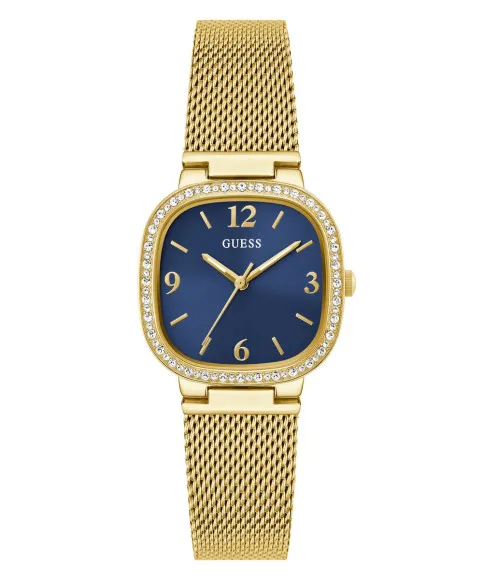 Guess® Analogue 'Tapestry' Women's Watch GW0354L6 is a stunning piece that will elevate any ensemble. Crafted with a keen eye for detail, this watch embodies the elegance and sophistication that Guess is renowned for. The gold stainless steel case gleams with a luxurious finish, while its square design makes a bold statement on your wrist. Measuring 32mm in diameter and 8mm in thickness, it's perfectly sized for comfortable wear. The charming blue dial adds a pop of color, contrasting beautifully against the shining case and band. With stone settings adorning the bezel, this watch truly stands out in any setting. The watch runs on a precision quartz movement, ensuring excellent timekeeping that you can rely on daily. It features a mineral glass dial window, offering durability without compromising on style. The stylish gold stainless steel band is 19cm long and 16mm wide, secured by a folding clasp that combines both practicality and elegance. With a water resistance of up to 3 bars, this watch is versatile enough for daily wear, whether at the office or a night out. Each aspect of the Guess® Analogue 'Tapestry' Women's Watch reflects a commitment to quality and style, making it a must-have for the modern woman who appreciates both fashion and function.