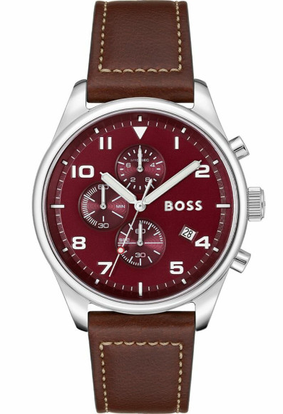 Introducing the Hugo BossĀ® Chronograph 'View' Men's Watch 1513988, a striking blend of style and precision that embodies the essence of contemporary masculinity. The watch features a remarkable red dial that captures attention with its boldness, while the stainless steel round case ensures durability and elegance, measuring 44mm in diameter and just 11mm thick. Underneath the striking exterior lies a reliable quartz movement, guaranteeing accuracy in every second of your day. The carefully crafted mineral glass offers protection against scratches, allowing the vibrant dial to shine through without compromise. Complementing the sophisticated case is a rich brown leather band, which adds a touch of warmth and sophistication to your wrist. Designed for comfort, the band measures 21cm in length and 21mm in width, making it a perfect fit for various wrist sizes. The buckle clasp provides secure fastening, ensuring that the watch stays in place whether during professional engagements or casual outings. With a water resistance of up to 3 bars, this watch withstands everyday challenges, and the integrated calendar feature keeps you updated. The chronograph display is not only functional but adds an element of dynamic appeal to the overall design, perfect for men who appreciate both performance and aesthetics. The Hugo BossĀ® Chronograph 'View' Men's Watch is not just a timepiece; itās a statement of style. Each element of this watch has been meticulously chosen, making it suitable for any occasion, from the boardroom to the weekend getaway, ensuring you make an impression wherever you go.Shop Hugo Boss 1513988 at Ormoda