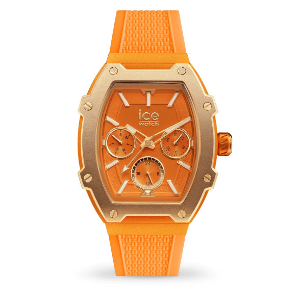 Step into a world where vibrant colors meet sophisticated design with the Ice Watch® Multi Dial 'Ice Boliday - Bright Orange' Women's Watch 023287. This timepiece embodies an adventurous spirit, perfect for those who love to stand out yet appreciate elegance. The casual style is enhanced by a bold, multicolored aluminum case that measures 45mm in length and 35mm in width. Its uniquely shaped tonneau case is complemented by an orange dial that not only catches the eye but also offers functionality with a day-date calendar feature. The watch is designed for everyday wear, ensuring comfort as you go about your day. Crafted with a silicone band in a matching bright orange hue, this watch delivers both style and practicality with a length of 19cm and a width of 19mm, completed by a secure buckle clasp. The lightweight nature of the watch, weighing just 52 grams, makes it ideal for prolonged wear without any discomfort. With a remarkable water resistance of up to 5 ATM, it allows for splashes and brief immersions, ensuring your beauty accessory is also functional. The mineral glass window adds an extra layer of protection, keeping the stunning details of your watch visible and pristine. Whether you're dressing up for a day out or keeping it casual, the Ice Boliday is the perfect companion.Shop Ice Watch 023287 at Ormoda