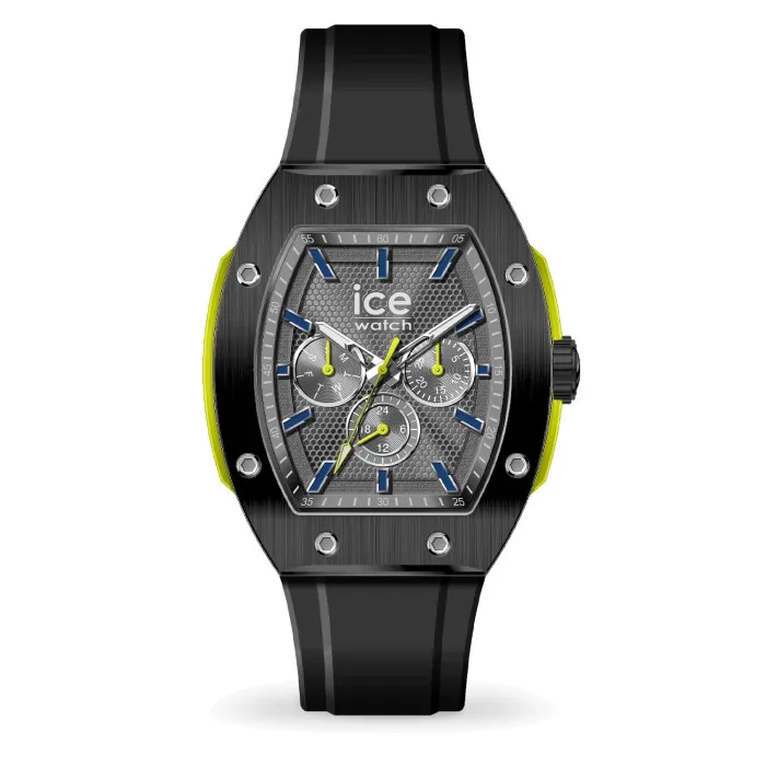 Discover the Ice Watch® Multi Dial 'Ice Boliday - Prestige - Black Yellow', a remarkable men's watch that stands out for its striking design and unmatched functionality. Crafted for the modern man, this large timepiece seamlessly blends aesthetics with performance. The watch features a multi-dial display, making it not just a functional accessory but also a statement piece that showcases your taste. The vibrant black and yellow color scheme of the versatile resin case exudes confidence and avant-garde style. Measuring 51mm in length and 44mm in width, its tonneau shape ensures a comfortable and secure fit on your wrist. The black dial is protected by a mineral glass window that guarantees durability and clarity. The day-date calendar feature enhances the practicality of this timepiece, while the reliable quartz movement ensures precise timekeeping you can depend on every day. Designed with an eye for adventurers and trendsetters, the watch is complemented by a sturdy black silicone band measuring 21cm in length and 23mm in width; this combination makes it an ideal accessory for both casual outings and outdoor activities. Weighing just 112 grams, this watch offers the perfect balance between solid construction and lightweight wear. Additionally, it boasts a water resistance rating of 3 bars, allowing you to enjoy peace of mind in various environments. Elevate your watch collection with Ice Watch, a brand synonymous with quality and innovation in the world of timepieces. Whether you wear it at the office or during your leisurely activities, this watch is a timeless addition that embodies style and functionality. Embrace the bold with the Ice Watch® Multi Dial 'Ice Boliday - Prestige - Black Yellow', 024738. Let your wrist do the talking as you proudly showcase this exceptional blend of artistry and engineering.