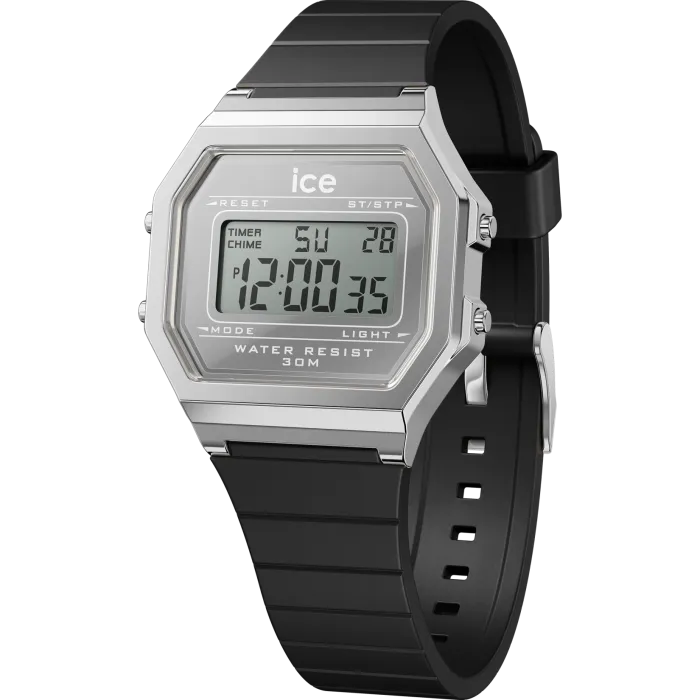 Introducing Ice Watch® Digital 'Ice Digit Retro - Metal Silver Mirror - Black' Women's Watch (Small) 022735