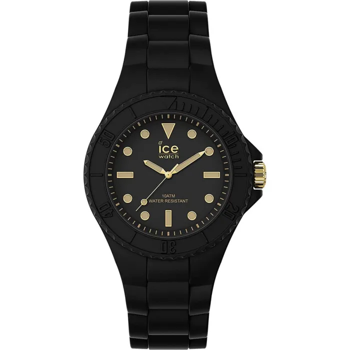 Introducing the Ice Watch® Analogue 'Ice Generation - Black Gold' Unisex's Watch, a stylish piece that merges sleek design with everyday functionality. Crafted to cater to the modern individual, this watch encapsulates the spirit of a new generation. Designed by Ice Watch, a brand recognized for its innovative approach and commitment to quality, this timepiece embraces a casual style that effortlessly complements any outfit. The attention to detail is apparent in its rounded silhouette and the harmonious blend of black and gold tones, making it an eye-catching accessory for both men and women. The watch features a robust black silicone case with a diameter of 34mm and a thickness of 10mm. This ensures not only a comfortable fit but also durability for daily wear. Complementing the case is a black dial that enhances readability, covered with mineral glass for protection. The analogue display is simple yet elegant, allowing for quick time checking without any fuss. With a water resistance of up to 10 bars, it is designed for those who live an active lifestyle while still wanting to look stylish. The strap, also made of silicone, is both soft and resilient. Measuring 19cm in length and 17mm in width, it comfortably fits a variety of wrist sizes and secures with a reliable buckle clasp. Weighing merely 42 grams, it is lightweight enough for all-day wear. Whether you're dressing up for a special occasion or keeping it casual, the Ice Generation - Black Gold is the perfect accessory to express yourself with ease. Embrace your individuality with this exceptional timepiece that balances chic design and practical function.