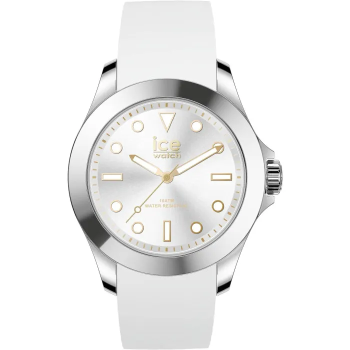 Indulge in the elegance of the Ice Watch Analogue 'Ice Steel - Classic - White Gold', a stunning piece designed with the modern woman in mind. This exquisite watch boasts a sophisticated round case crafted from durable stainless steel, showcasing a radiant silver hue that effortlessly complements any outfit. With a 40mm diameter and a thickness of just 12mm, this timepiece carries a light weight of 80 grams, making it comfortable for all-day wear. Its pristine white dial is protected by mineral glass, ensuring durability while maintaining a crystal-clear view of the time. The casual style of this watch is elevated by its chic white silicone band, measuring 19cm in length and 19mm in width, fastened securely with a stylish buckle clasp. The watch features an analogue display and includes a date calendar to keep your schedule on track. Engineered with precise quartz movement, you can rely on its accuracy for daily wear. With a water resistance of up to 10 bars, this timepiece allows you to carry on with your day without worrying about splashes or brief immersions. The Ice Steel - Classic - White Gold is not just a watch; it’s a statement piece that reflects your personal style and sophistication. Perfect for casual adventures or special occasions, it harmonizes practicality with luxury. Whether you're heading to a meeting or enjoying a day out, this versatile watch is destined to be a favorite accessory. Shop Ice Watch 020384 at Ormoda