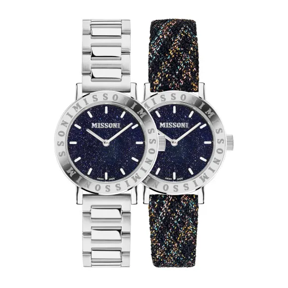 Missoni, a name synonymous with elegance and innovation, has been enchanting the world with its distinct designs for decades. Renowned for its rich heritage in fashion, the brand artfully blends intricate patterns and vibrant colors, creating pieces that are not just accessories but statements of style. The watchmaking division reflects the same ethos, marrying traditional craftsmanship with contemporary aesthetics. Each piece tells a story of luxury, quality, and uniqueness, designed to empower individuals, especially women who seek a blend of functionality and flair. Missoni prides itself on the immaculate detailing and artistry that characterizes its creations, ensuring that every woman who wears a Missoni watch embraces a world of sophisticated beauty. This commitment extends beyond mere aesthetics; it's about a lifestyle filled with confidence and grace. With a Missoni timepiece on your wrist, you are not just wearing a watch. You are donning a legacy of style that continues to inspire. Introducing MissoniĀ® Analogue 'Lucky Stones' Women's Watch MWECA0123