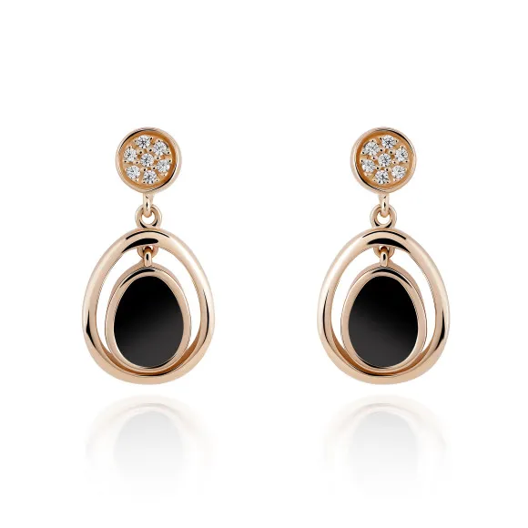 Introducing the Orphelia® 'Alda' Women's Sterling Silver Drop Earrings - Rose ZO-7470, a true embodiment of sophistication and elegance. Crafted from 925 sterling silver, these exquisite earrings blend a contemporary design with timeless charm. The gentle rose hue adds a touch of warmth, making them the perfect accessory for any occasion. The luxurious combination of onyx and zirconium stones delivers a striking contrast in a delicate yet bold design that truly elevates your fashion statement. Measuring 2cm in length and 1cm in width, the 'Alda' earrings are perfectly sized to frame the face beautifully. The intricate craftsmanship is evident in every detail, from the shimmer of the rose-toned metal to the captivating black stones, which are sure to catch the light and draw admiration. The butterfly back finding ensures a secure and comfortable fit, making these earrings an effortless choice for both daytime events and evening galas. Styling these earrings is a breeze; pair them with a classic little black dress for a refined look or wear them with your favorite denim for a more casual vibe. The versatility of the 'Alda' earrings means they make a thoughtful gift for a special woman in your life or a treat for yourself when you're in need of something extra chic. These earrings are more than just accessories; they are a reflection of your personal style and sophistication, destined to become a staple in your jewelry collection.Shop Orphelia ZO-7470 at Ormoda