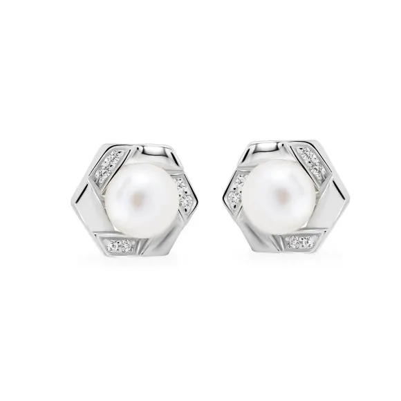 Introducing the stunning Orphelia® 'Aliva' Women's Sterling Silver Stud Earrings - Silver ZO-7469. These exquisite earrings are a celebration of elegance and femininity, perfect for any occasion. Crafted from high-quality 925 sterling silver, the Aliva earrings feature a captivating design that is both timeless and contemporary. At just 1 cm in width and length, these earrings sit gracefully on the ear, enhancing your natural beauty without overwhelming your features. The allure of these earrings lies in their unique combination of materials. The lustrous freshwater-cultured pearl shines in a pristine white hue, radiating sophistication and charm. The shimmering zirconium accents provide a touch of sparkle, making these earrings ideal for daytime wear or as a stunning accessory for a night out. With a secure butterfly back finding, you can wear them with confidence, knowing they will complement your style flawlessly. The Aliva earrings are not just a piece of jewelry; they are an expression of your personality and a reflection of elegance. Whether you’re dressing up for a special event or adding a touch of refinement to your everyday look, these earrings will become a cherished addition to your collection. Embrace your femininity with the Orphelia Aliva earrings, a perfect blend of quality and beauty. The timeless design and superior craftsmanship make them an ideal gift for that special woman in your life or a delightful treat for yourself. Each pair is designed to shine and elevate your wardrobe, ensuring you stand out in any crowd.