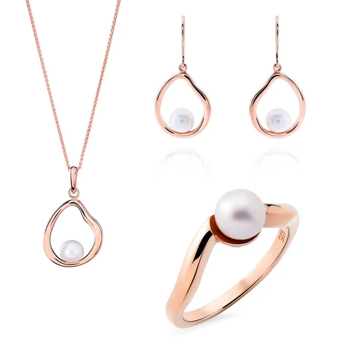 Indulge in the elegance of the Orphelia® 'Baptiste' Women's Sterling Silver Set: Necklace + Earrings + Ring - Rose SET-7507/RG, a stunning combination that defines sophistication for any occasion. This exquisite jewelry set, meticulously crafted from 925 sterling silver, showcases a delightful rose hue that radiates femininity and grace. The set features beautifully designed pieces adorned with freshwater cultured pearls, each round pearl glistening in a brilliant white, which perfectly complements the delicate silver setting. The necklace, measuring 42 centimeters with an adjustable extension of 3 centimeters, allows for a customized fit that can enhance any neckline. Its lobster claw clasp ensures both security and ease of wear, securing your elegance with confidence. The earrings echo the necklace's charm, featuring a versatile hook back finding that makes them effortless to wear while providing a graceful dangle. Enhancing the set further is the captivating ring, designed to draw attention without overpowering, ensuring you remain the center of elegance. The mixed textures and tones of the pieces create a harmonious balance, making it perfect for both day-to-night transitions. This exceptional set is not just a collection of jewelry; it's a statement of individuality and style, designed for women who appreciate the finer things in life. Experience the artistry of Orphelia and elevate your jewelry collection with this charming ensemble that embodies luxury with a touch of contemporary flair.Shop Orphelia SET-7507/RG at Ormoda