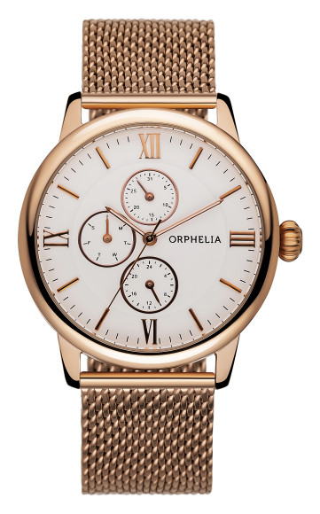 Orphelia, a brand synonymous with precision and masculine elegance, presents the 'Executive' – a timepiece that perfectly mirrors the professional man's resolve and aesthetic. Crafted for those who appreciate fine engineering, the 'Executive' is more than a watch; it's a statement of intent, a companion for the ambitious journey. 122-9707-17 Defining casual sophistication, the Orphelia 'Executive' Men's Watch blends functionality with style to create a watch that's suited for a day at the office or a relaxed weekend outing. It's a watch that speaks to the man who handles business with finesse and enjoys his downtime with equal passion. This watch boasts a robust 43mm rose gold stainless steel case that exudes a warm and inviting hue. Rounded for comfort yet bold in its appearance, the well-proportioned case with its 10mm thickness makes a confident statement without being overtly imposing. The dazzling white dial sets a pristine backdrop for the watch's multi-dial display, allowing for seamless tracking of time with day-date functionality at a glance. Protected by a resilient mineral glass, the watch face remains unscathed from the rigors of daily wear. A harmonious extension of the rose gold case, the stainless steel band measures a confident 21cm in length and 22mm in width, culminating in a secure bangle bracelet clasp that guarantees a snug fit for any wrist size. And for the man on the move, the watch maintains its composure with a water resistance level of 3 bars, making it robust against everyday encounters with water. Crafted with the professional in mind, this is a piece that stands as a testament to a man's refined taste and determination. Ormoda is not just about exquisite timepieces; it is about the experience that comes with them. When you choose Orphelia 'Executive', you choose a tradition of excellence that has been thriving since 1976. Our commitment to you extends beyond the purchase with perks that include free express shipping handled by premium couriers, ensuring your newest acquisition arrives swiftly and securely. Our confidence in the quality of our watches is backed by a 30-day free return policy, a two-year warranty, and the assurance of expert customer support. These are the standards we set – not just to meet your expectations but to redefine them.Shop Orphelia 122-9707-17 at Ormoda