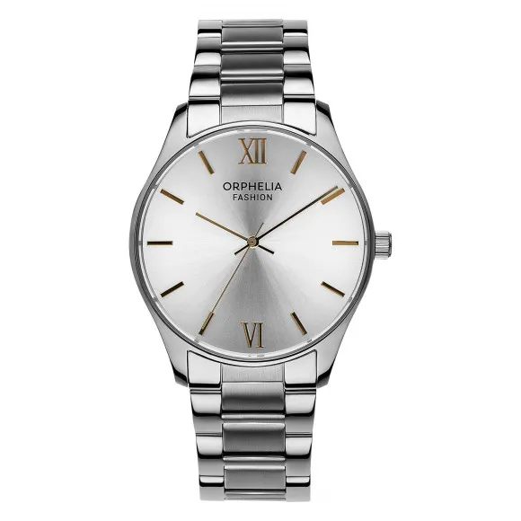 The Orphelia Fashion® Analogue 'Oxford' Men's Watch OF764900 is a testament to sophisticated style and functional elegance. Tailored for the contemporary man, this casual watch embodies a union of practicality and aesthetic appeal. Its striking silver case, crafted from robust stainless steel, measures a sleek 38mm in diameter and 9mm in thickness. The round case design not only enhances its visual charm but also ensures durability for daily wear. With a water resistance of up to 3 bars, this timepiece stands ready against occasional splashes, making it an ideal companion for both work and leisure. The silver dial, protected by sturdy mineral glass, features clear indications for effortless time reading, ensuring that function accompanies beauty. The watch displays analog time, enhancing its classic allure while perfectly catering to those who appreciate traditional watchmaking. The silver stainless-steel band, measuring 21cm in length and 19mm wide, complements the case beautifully and is secured with a fold-over clasp for added convenience and security. Weighing just 84 grams, it's designed for comfort, so it feels snug but never burdensome. Versatility defines the 'Oxford' watch, easily transitioning from a professional setting to a casual outing. Whether paired with a tailored suit or a smart-casual outfit, it stands out without overshadowing your style. This watch is not just about telling time; it's an accessory that reflects your personality and complements your lifestyle. Crafted with precision and designed for the modern man, the Orphelia Fashion® Analogue 'Oxford' is a definitive choice for those who value style and substance.Shop Orphelia Fashion OF764900 at Ormoda