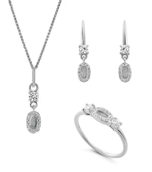 Orphelia® 'Lily' Women's Sterling Silver Set: Necklace + Earrings + Ring - Silver SET-7582