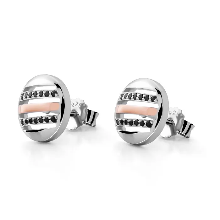 Orphelia® 'Maxwell' Women's Sterling Silver Stud Earrings - Silver/Rose ZO-7501