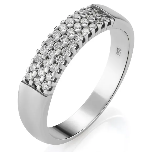 Discover the elegance of the Orphelia® Women's Whitegold 18C Ring - Silver RD-3014/1, a stunning piece that embodies both luxury and sophistication. This exquisite ring is crafted from 18-carat white gold, providing a radiant base that enhances its overall allure. The design showcases a delicate pavé setting adorned with 33 brilliant diamonds, each sparkling with a clarity grade of small inclusions, ensuring the ring captures light beautifully from every angle. With a total diamond weight of 0.3 carats, this ring is not just a piece of jewelry; it is an embodiment of elegance that enhances any woman's hand. Its width of 0.5 cm provides a balanced and comfortable fit, making it suitable for both everyday wear and special occasions. The round shape of the diamonds contributes to the timeless charm, while the white diamonds in a color grade of Wesselton (H) add a classic touch that never goes out of style. This ring is designed for the modern woman who appreciates quality craftsmanship and a touch of luxury in her jewelry collection. When you wear this ring, you're not just accessorizing; you're making a statement about your refined taste and classic elegance. Whether you're celebrating a milestone or simply treating yourself, the Orphelia ring is the perfect companion to any outfit.