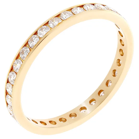 Discover elegance embodied in the Orphelia® Women's Yellow Gold 18C Ring - Gold RD-3407, an exquisite piece designed for the modern woman who appreciates luxury and sophistication. Crafted from 18-carat yellow gold, this ring is a timeless accessory that transcends trends. The luminous gold band highlights the stunning channel setting, which holds a total of 32 brilliant diamonds, each with a clarity rating of small inclusions. The diamonds, classified as White/Wesselton, offer a perfect touch of brilliance and sparkle that will catch the eye and captivate the heart. The total diamond weight of 0.85ct ensures this ring commands attention without being overpowering. Measuring 0.2cm in width, it strikes the perfect balance between delicacy and presence, making it the ideal statement piece for any occasion. This ring is not just an accessory but a symbol of style and grace, tailored specifically for women who value refined aesthetics. Whether you are attending a formal event or simply wish to elevate your everyday ensemble, this piece enhances your elegance effortlessly. The clean lines of the design paired with the choice of precious metals make this ring an essential addition to your jewelry collection, perfect for gifting or self-indulgence. Every detail has been meticulously considered, ensuring that this ring does not just adorn but tells a story of sophistication and confidence in every setting its worn in.