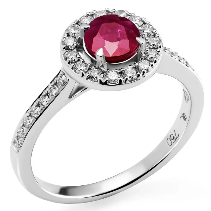 Embrace timeless elegance with the Orphelia® Women's Whitegold 18C Ring - Silver RD-3916/RU. This exquisite piece is meticulously crafted from 18-carat white gold, radiating sophistication and luxury. The ring, with its delicate round shape, is adorned with a stunning array of 29 diamonds, each one assessed for its clarity, which holds small inclusions, allowing for a sparkle that captivates the very essence of refinement. The diamonds are of a brilliant white color, known in the industry as H, ensuring their beauty complements any outfit or occasion. Adding to its charm is a vibrant ruby gemstone that brings a pop of color, skillfully integrated within the design. This unique piece of jewelry promises to make a statement, whether worn on a special occasion or for an everyday touch of luxury. The total gemstone weight of 0.73ct, including 0.29ct of diamonds, reflects its high-quality craftsmanship and attention to detail. With a width of 0.9cm, this ring fits perfectly within the contours of your finger, making it an ideal choice for any woman seeking both elegance and comfort. Whether you are looking to treat yourself or searching for the perfect gift, the Orphelia® Women's Whitegold 18C Ring - Silver RD-3916/RU is a splendid choice that embodies your unique style and grace.