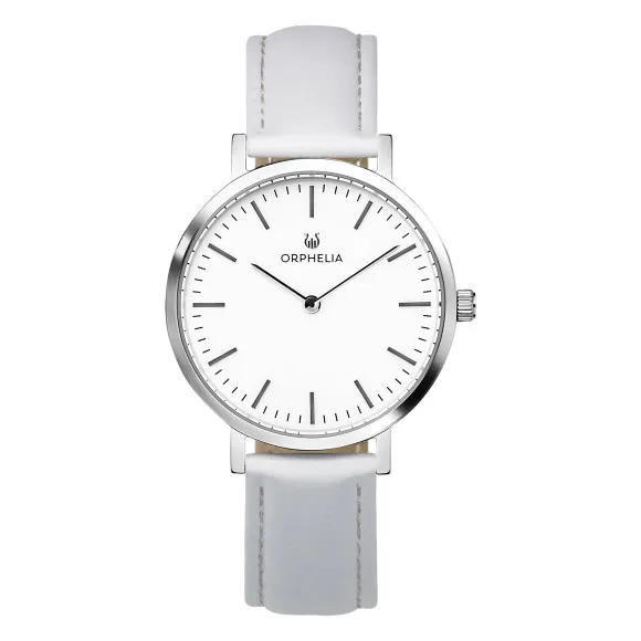Introducing the Orphelia Analogue 'Spectra' Women's Watch OR11800, a charming timepiece designed for the modern woman. With a round stainless steel case, this watch measures 36mm in diameter, making it the perfect size to complement a variety of wrist sizes while adding a touch of elegance to any outfit. The watch case, just 6mm thick, envelops a pristine white dial that speaks to sophistication and simplicity. The mineral glass dial window offers durability, ensuring that your watch withstands daily wear while maintaining its exquisite appearance. The Spectra watch showcases a quartz movement, known for its accuracy and reliability. Whether you're in a business meeting or enjoying a casual day out, this watch fits seamlessly into your lifestyle. The strap is crafted from genuine leather, featuring a graceful white hue that enhances the overall aesthetic. With a length of 21.5cm and a width of 15mm, the leather band provides both comfort and style, secured elegantly with a sturdy buckle clasp. This watch is not only functional but beautifully designed, making it ideal for women who appreciate both fashion and practicality. It is water-resistant up to 3 bars, allowing for everyday use without worry. The lightweight design at 29 grams means you may even forget you're wearing it! The Orphelia Analogue 'Spectra' is more than just a watch; it's a statement piece that reflects your unique style and sophistication, making it a prized addition to any jewelry collection.Shop Orphelia OR11800 at Ormoda