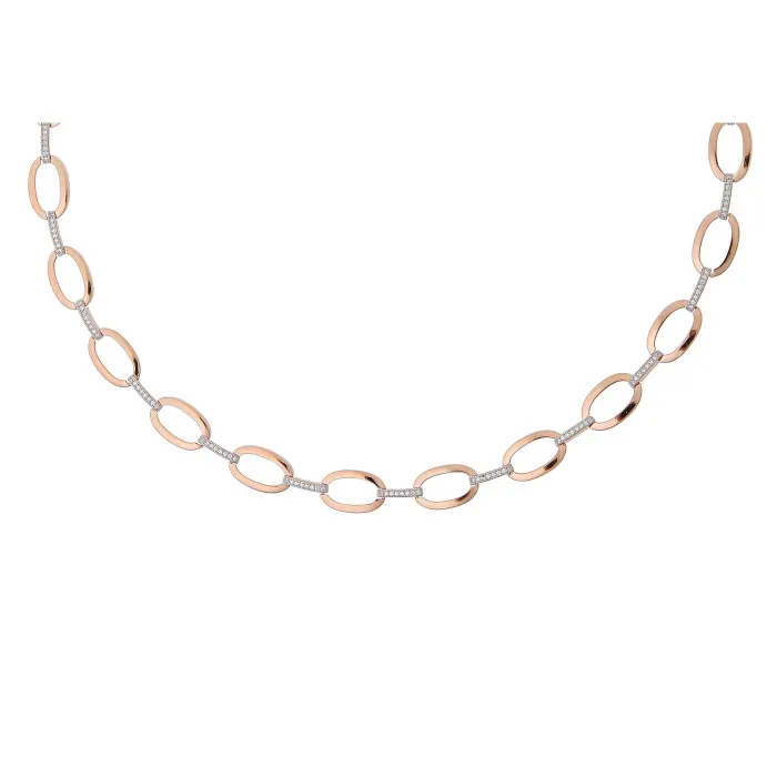 The Orphelia® Women's Sterling Silver Necklace - Silver/Rose ZK-7210 is a stunning expression of elegance and sophistication. Crafted with meticulous attention to detail, this exquisite piece features a delicate design that effortlessly enhances any outfit. Its harmonious blend of silver and rose tones creates a captivating contrast, bringing a touch of warmth and romance to your jewelry collection. Made from high-quality 925 sterling silver, this necklace not only showcases a luxurious sheen but also ensures durability and longevity. The white zirconium gemstone adds a sparkling touch, reflecting light beautifully and making this necklace perfect for both day and nighttime occasions. Measuring 43 cm in length with a width of 1 cm, it is designed to sit gracefully on the collarbone. The fold-over clasp ensures a secure fit, making it easy to wear and take off. This necklace is ideal for women who appreciate refined jewelry that combines contemporary style with classic elements. Whether you're dressing up for a special occasion or simply adding a touch of elegance to your everyday attire, this necklace is sure to impress. Embrace the charm of the Orphelia brand, where each piece is crafted to embody the spirit of luxury and femininity, allowing you to shine effortlessly wherever you go.