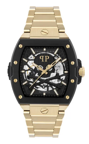 Introducing the Philipp Plein® Analogue 'The $keleton2.0' Men's Watch PWJFA0625, where innovation meets bold design. This timepiece embodies luxury with its striking and versatile style, designed for the modern man who knows how to make an impression. The brand is synonymous with edginess and extravagance, combining quality craftsmanship with contemporary trends. Each watch is meticulously crafted, ensuring that every detail speaks sophistication. The $keleton2.0 stands as a testament to Philipp Plein's dedication to creating statement pieces that challenge the ordinary. This watch features an automatic movement, providing precise timekeeping that complements the dynamic lifestyle of its wearer. The watch case, clocking in at 44mm and crafted from premium stainless steel, is both durable and visually stunning. The sleek black case paired with the tonneau shape introduces an element of distinction. With a thickness of 12.8mm, it harmonizes perfectly with the black dial, protected by mineral glass, ensuring clarity and resilience. Aimed at a confident male audience, this watch displays an analogue type that exudes a classic elegance while housing modern technology. The luxurious gold stainless steel band adds to its grandeur, measuring 21cm in length and 18.5mm in width. With a deployment clasp, wearers can easily secure it on the wrist, all while enjoying a comfortable fit. Rated at 5 ATM, this timepiece is capable of withstanding splashes and brief immersion in water. Weighing just 224g, the watch feels solid yet comfortable, making it suitable for day-to-night wear. The Philipp Plein® Analogue 'The $keleton2.0' Men's Watch PWJFA0625 isn't just a watch; it is a bold expression of individual style and status.Shop Philipp Plein PWJFA0625 at Ormoda